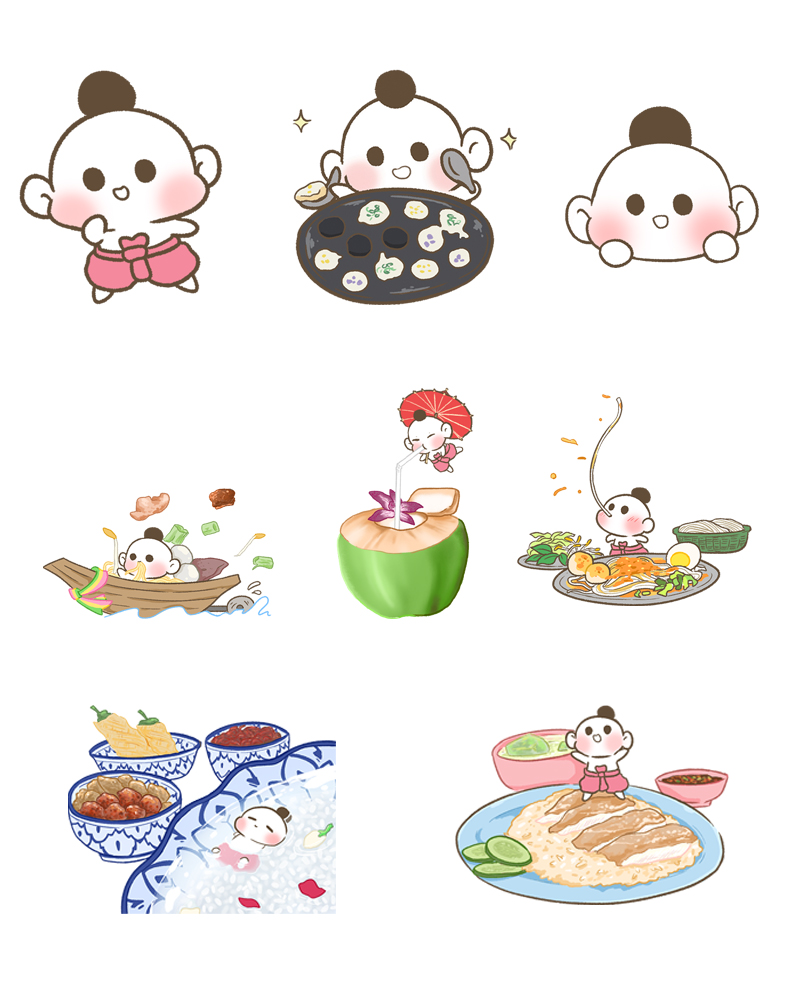 สติ๊กเกอร์เซ็ตอาหาร 8 ชิ้น