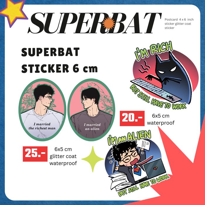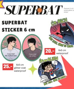 Batman&Superman married: 6×5 cm, white PP stickers, Glitter coating